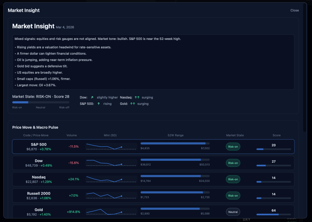 - Alternative Data Integration – Google Trends search volume data (“buy gold”, “inflation”, etc.) as sentiment indicators and retail attention proxies